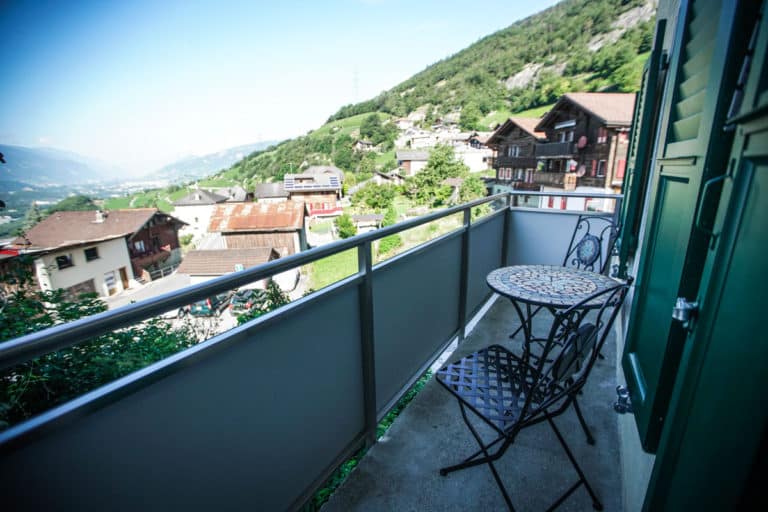 Lassen Sie Ihren Tag in diesem besonderen Panoramazimmer von 20m2, bei einem guten Tropfen ausklingen.Vom Balkon, mit Blick ins wilde Rhonetal lässt es sich noch mehr geniessen.